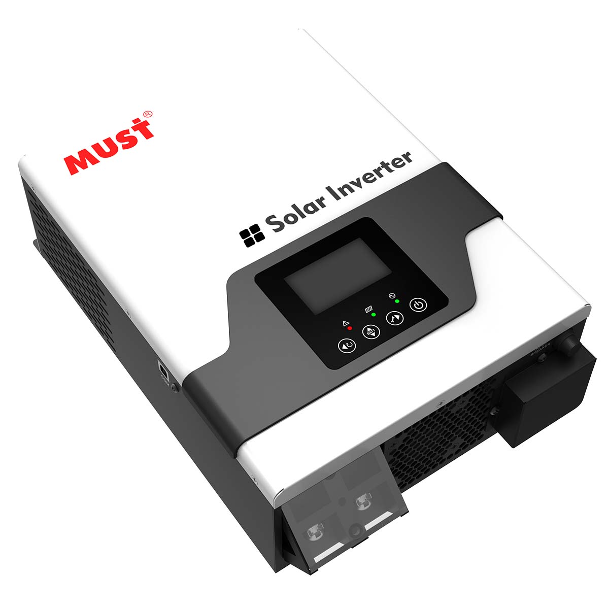 Гибридный солнечный инвертор MUST PV18-1012 VPM II (PF 1.0) для дома и дачи это многофункциональный инвертор/зарядное устройство мощностью 1 кВт ( кратковременно 2 кВт ) в котором сочетаются функции инвертора, контроллера заряда аккумуляторов от солнечных батарей и зарядного устройства аккумуляторных батарей от сети 220В ( или генератора ) для обеспечения бесперебойной подачи питания, с возможностью выбора приоритетов зарядки и нагрузки. Используется в небольших солнечных электростанциях и системах бесперебойного питания.