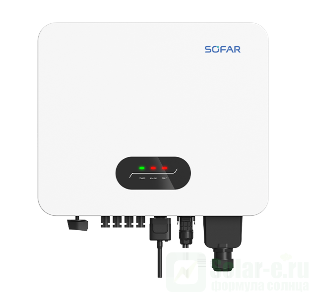 Сетевой солнечный инвертор SOFAR 25000KTLX-G3P 3-фазы мощностью 25 кВт это современный и высокоэффективный трехфазный фотоэлектрический сетевой инвертор второго поколения с двумя MPPT контроллерами и увеличенной входной мощностью от СБ. Данный инвертор полностью подходит для построения гелиосистемы для экономии и продажи электроэнергии в сеть ( объекта микрогенерации ). Инверторы серии KTLX имеют уникальную встроенную функцию - возможность снижения мощности по команде делимитера (устройства, отслеживающего передачу электроэнергии в сеть). Датчики делимитера устанавливаются перед счетчиком, если определяется отдача электроэнергии в сеть, делимитер дает команду инвертору снизить вырабатываемую мощность. Тем самым предотвращается отдача электроэнергии в сеть (очень часто российские счетчики считают отданную электроэнергию как потребленную). Сетевой инвертор используется только совместно с городской сетью, принцип его работы заключается в подмешивании ( добавлении) энергии вырабатываемой солнечными батареями в вашу сеть для обеспечения дополнительной нагрузки или экономии. К примеру, если текущее потребление на вашем объекте 20 кВт*ч, а солнечные батареи вырабатывают 15 кВт*ч, то из городской сети вы возьмете всего 5 кВт*ч, а остальные 15 кВт*ч в вашу сеть вольет сетевой инвертор.
