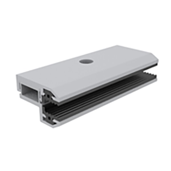Концевой зажим для крепежа стеклянных солнечных модулей без рамы ( dual glass ) к направляющей рейке.