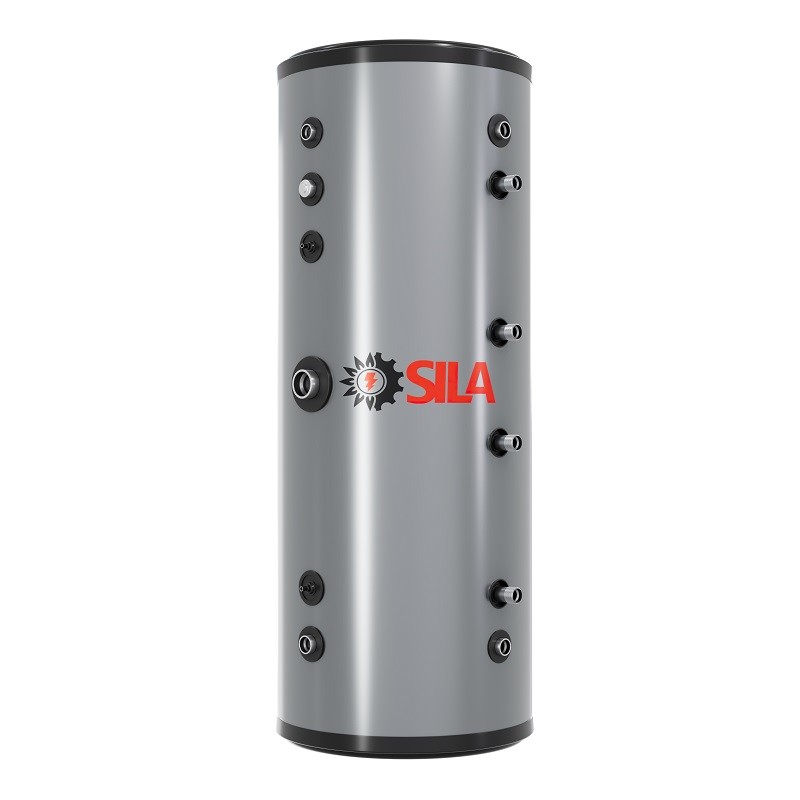 Бак SILA SSL-300-D PREMIUM имеет пять патрубков с внутренней резьбой 1", что делает бак по-настоящему универсальным и позволяет использовать его как буферную емкость в системах отопления с одним или несколькими источниками тепла (тепловой насос, солнечный коллектор, котел отопления). Внутренний бак из нержавеющей стали позволяет использовать его для горячего водоснабжения. Также предусмотрена возможность подключения электрического нагревателя в отверстие с внутренней резьбой 1,5", что делает его еще более универсальным.